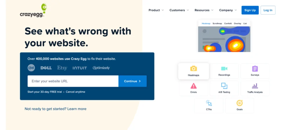 Crazy Egg is a website optimization tool featuring heatmaps, scroll maps, and A/B testing to help understand user behavior. It’s popular for its easy-to-understand visual reports.