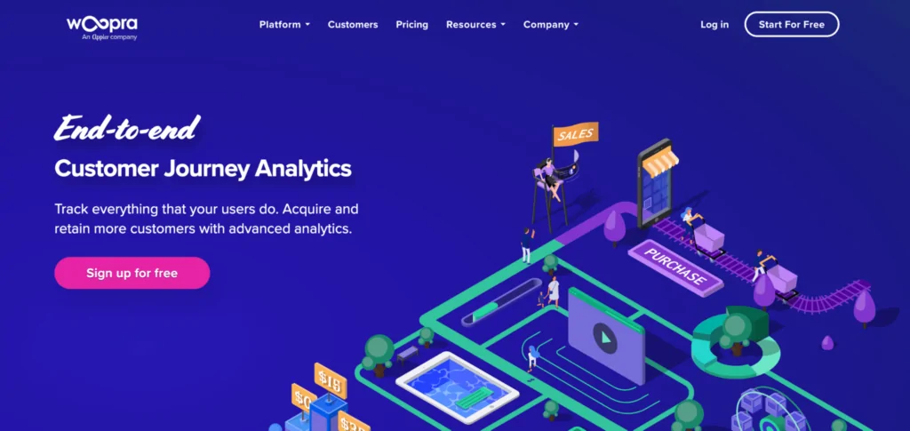 | Woopra | Real-time visitor tracking, funnel analysis, retention reports, customer segmentation, user journey mapping | • Free plan • Paid plans start at $999 per month |